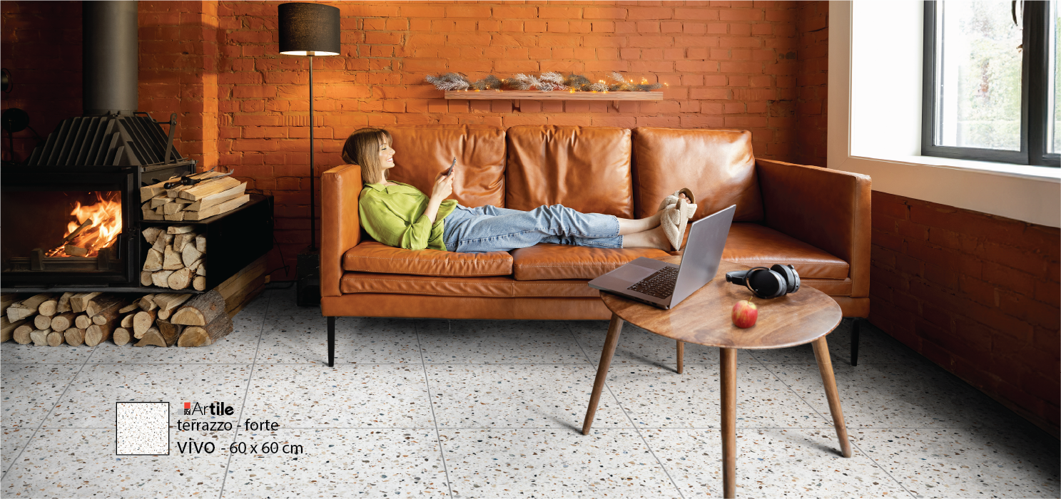 Kombinasi warna-warni dari serpihan memberikan tampilan yang hidup dan dinamis, cocok untuk menambahkan elemen visual yang menarik pada ruang.